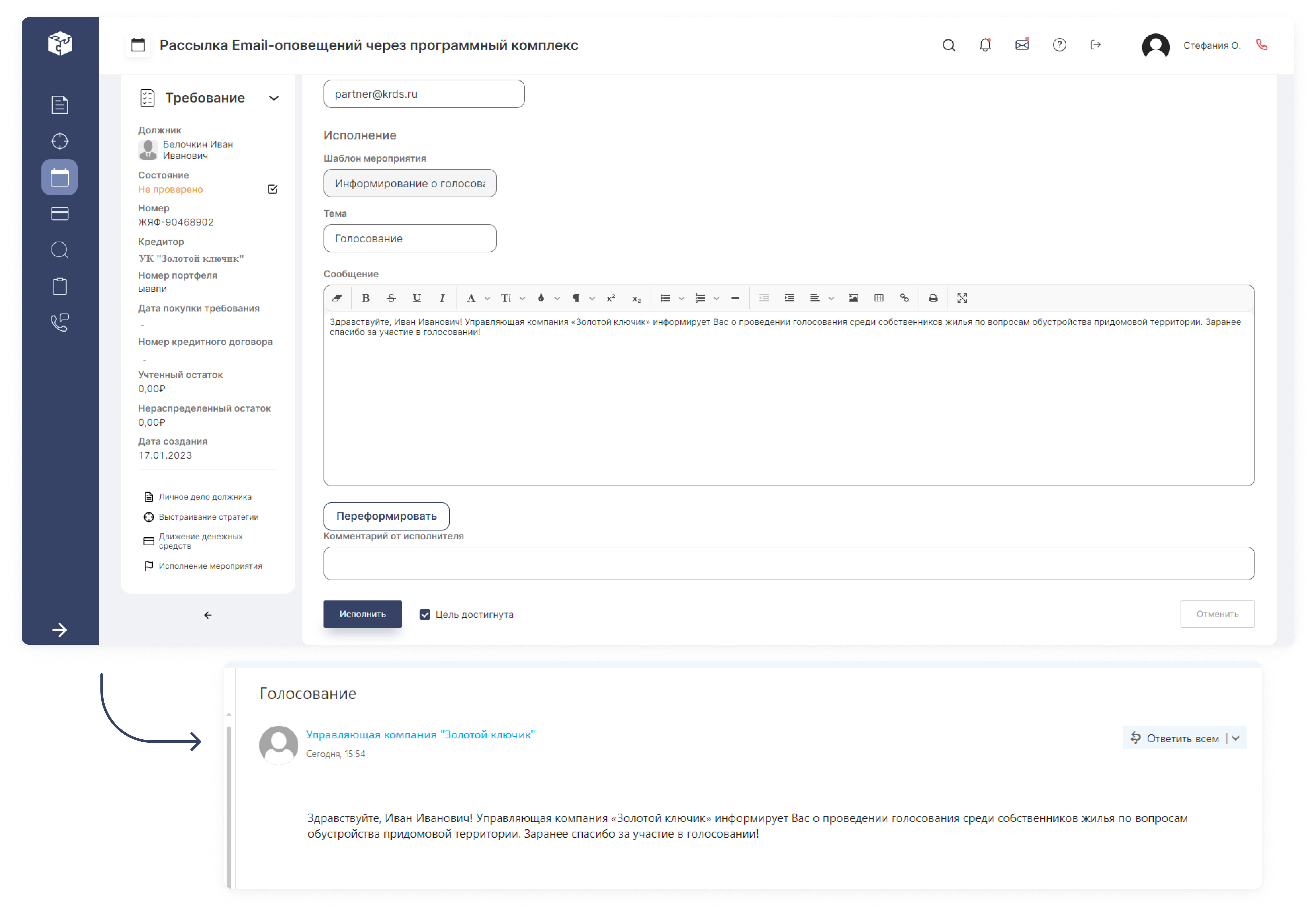 Результаты фиксируются: история коммуникации с клиентом сохраняется — ее всегда можно просмотреть.